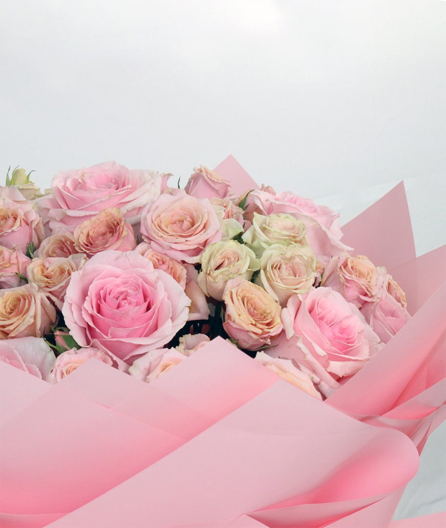 A graceful bouquet of 25 softly toned roses, artfully arranged to capture romance and refined elegance. A luxurious statement piece, perfect for elevated gifting and memorable occasions.